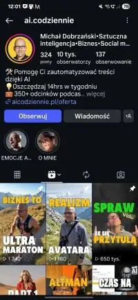 znamy się z Instagrama, TikToka lub YT, gdzie prowadzę profil AI Codziennie.
